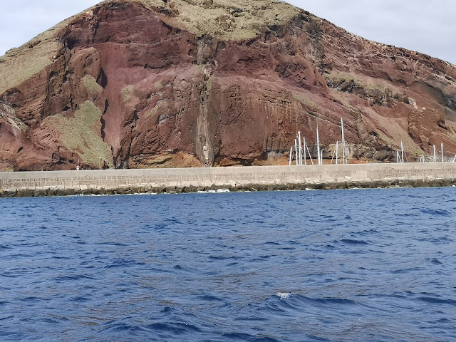 Die Ankerwinsch knarzt und ich ahne Böses. Es ist sieben Uhr morgens und es fängt erst an zu dämmern. Viel sieht man noch nicht, nur das was man sieht gefällt mir überhaupt nicht. Am Anker hängt ein Betonklotz. Ich fahre mit dem Bootshaken zwischen Anker und Betonklotz und lass die Kette ausrauschen. Mit einem Flopp verabschiedet sich der Klotz und fällt in die Tiefe. Noch einmal Glück gehabt. Wir laufen aus dem Hafen aus und setzen Segel, Kurs Richtung Madeira. Mit fünf Knoten kommen wir recht zügig voran. Der Wind nimmt noch etwas zu und so erreichen wir auch wieder mal acht Knoten, so dass wir schneller als geplant im Hafen von Quinta do Lorde einlaufen.