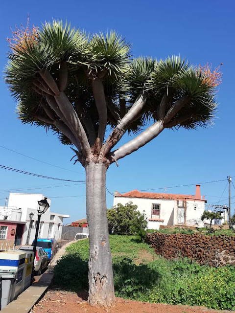 Nach einer halben Stunde Verspätung, erreichen wir schließlich Puntagorda, im Nordwesten der Insel. Die Ortschaft liegt auf 722m.ü.M. und die ganze Region ist bewaldet. Immer wieder sieht man Drachenbäume in der Landschaft und es gibt zahlreiche Mandelbäume die im Februar blühen. Wir legen eine kleine Mittagspause in der Bar „La Barraca“ ein und fahren dann weiter nach Los Llanos.